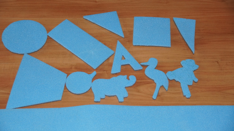 Всё, что нужно для создания этой игрушки: спортивный коврик (трапик) и канцелярский нож. Мы вырезали только несколько фигурок. Как видно на фото, там еще поле не паханое осталось. Можно сделать много, много.