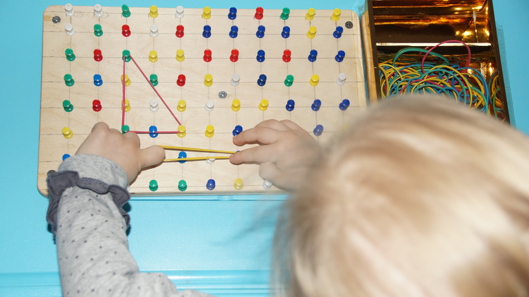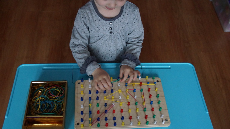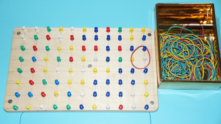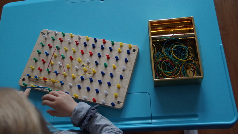 Во-первых, "рисовать резиночками". Для этого достаточно приобрести пачку банковских резинок. Рисовать можно геометрические фигуры, буквы, цифры, примитивные фигуры: домик, цветок и прочее.
