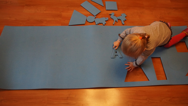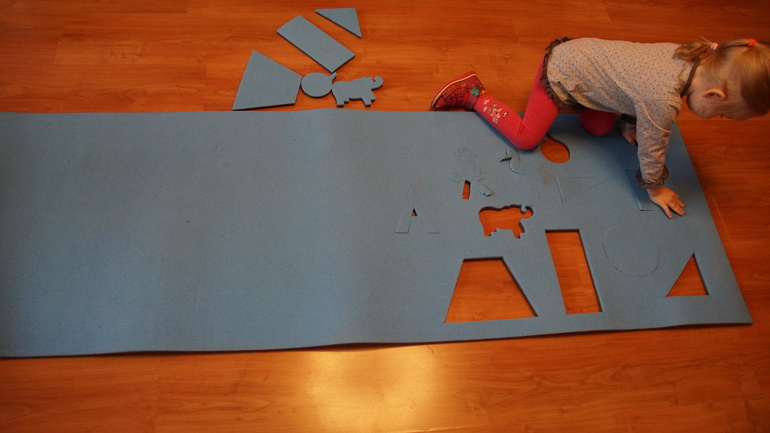 Это тот самый случай, когда размер имеет значение. У нас много покупных рамок-вкладышей, все они горячо любимы Аней. Но они обычного размера. А тут! Гигантский ковер, по которому можно ползать, лежать, собирать, разбирать. Красота!