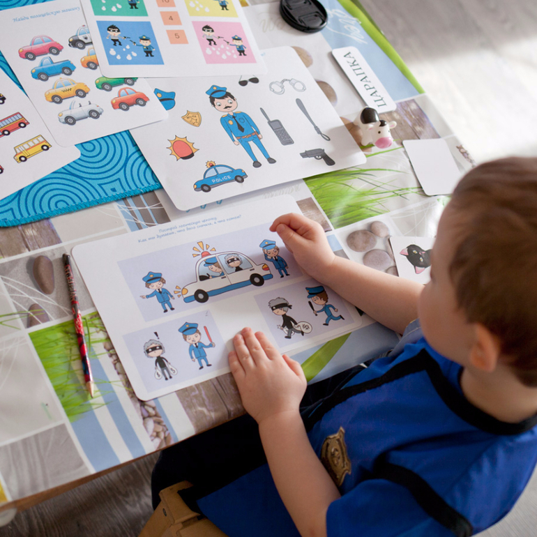 Изучаем окружающий мир (тематические занятия и циклы занятий)В этот раз мы изучали профессию - полицейский. Наша игра началась с книжки, в которой мы рассмотрели картинки, я рассказала кто такие полицейские (хотя для Вани это не открытие), а также какие еще есть смежные профессии - следователь, оперуполномоченный, криминалист и пр. А также рассказала кто такой преступник и почему его нужно поймать.