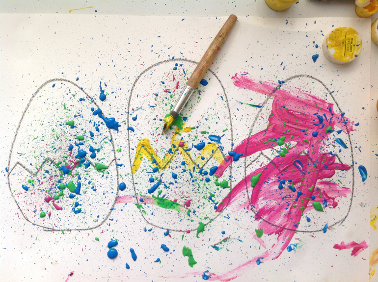 Рисовали яйца всей семьей. Думаю, здесь и так хорошо видно, кому какой шедевр принадлежит.