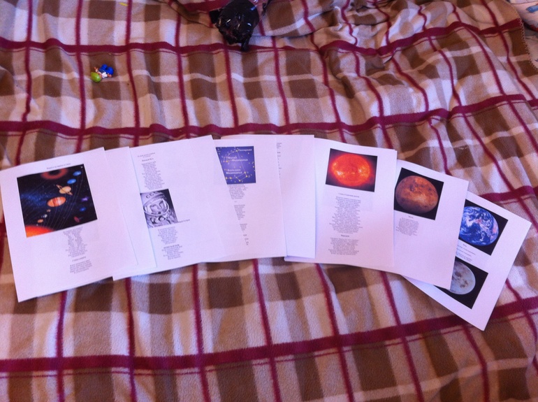 Ну и чтение,куда без него) книг,посвященных космосу, в ближайших магазинах я не нашла, пришлось пользоваться подручными средствами) стихи о космосе,планетах с картинками)