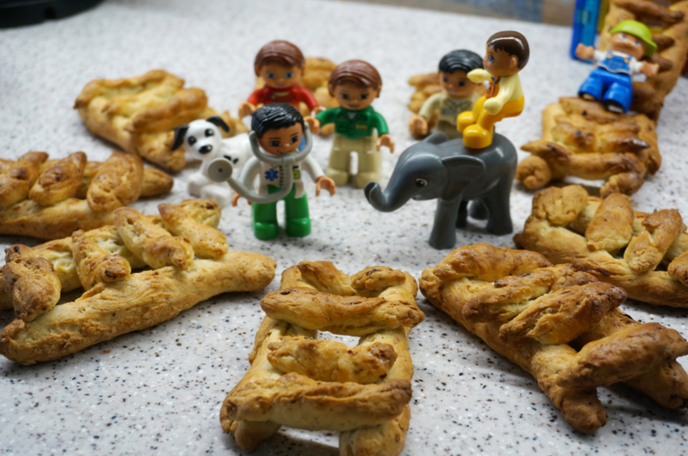 Все о развивающих игрушках, пособиях и книгах (обзоры, рекомендации,хвастики, ссылки)В день чествования Иоанна Лествичника (12.04) на Руси люди пекли обрядовое печенье - лесенки. Полагалось испечь по лесенке для каждого члена семьи - считалось, что это принесет домочадцам здоровье. А нам с Машей еще и веселье! Глядите, что получилось!