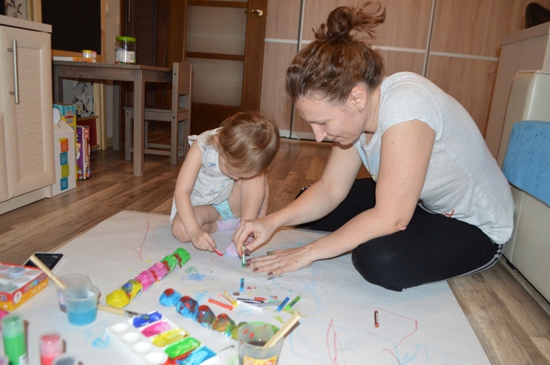 Но если у нас семейные сеансы рисования или как минимум девчоночьи, т.е. мы вдвоём, то тут за уши не оттащить пока не изведём все краски и все листы!