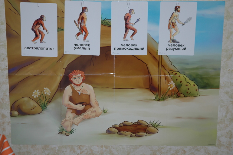 В самом начале на кухне на стену повесили плакат с пещерой, а под ним расстелили коврик - это и было жилище первобытного человека - Матвея.