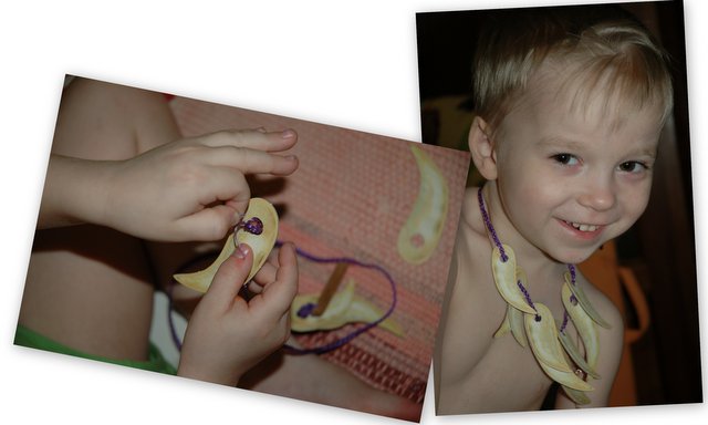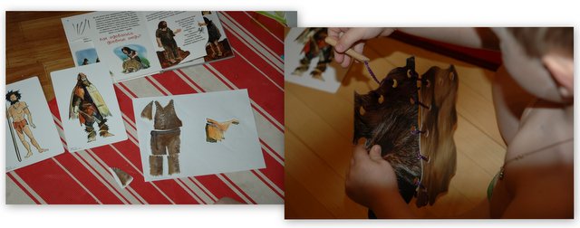 Изучали одежду первобытных людей, а потом и сами шили и даже делали настоящие бусы...))