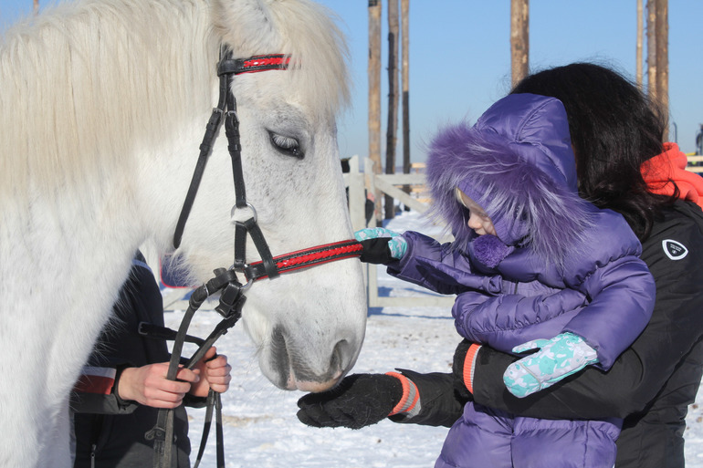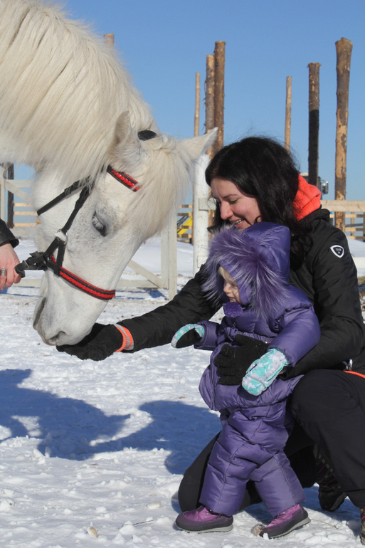 Первый раз дочка села в седло в год. Благо я об этом узнала намного позже, а то бы меня хватанул инфаркт. Но для себя решила, раз дочь действительно не боится и понимая всю пользу иппотерапии решила, занятиям быть. И вот в 1,8 наше первое полноценное занятие. Длилось оно всего 20 мин, но сколько эмоций и впечатлений. А еще был отличный солнечный зимний денек.))))