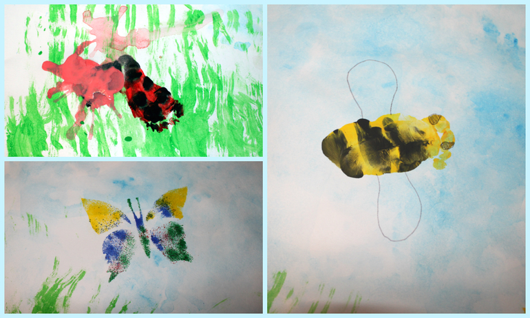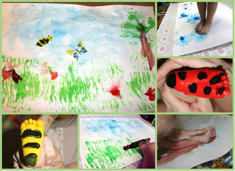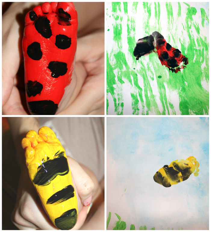 Пчёлка и божья коровка - отпечатки Катюшиных ножек.