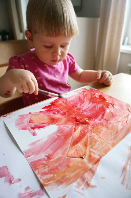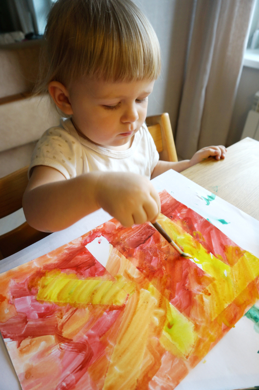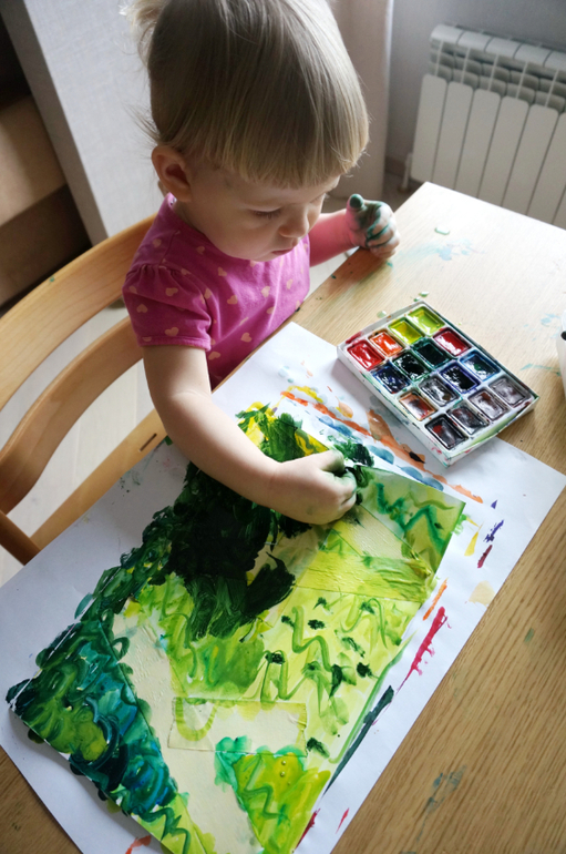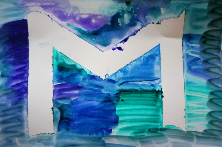Художественно-эстетическое развитиеМы как-то пробовали уже с Машей рисовать таким способом снежинки, а тут решили закрепить знания букв и совместить с цветотерапией. Я приклеила из бумажного скотча крупные буквы, дочь закрашивала фон, потом мы разумеется, скотч открепили и получили четкие очертание букв на ярком фоне. На следующий день, листы подсохли и я поставила новую задачу, раскрашивать белые буквы, это было не менее увлекательно! Трех зайцев одним махом!