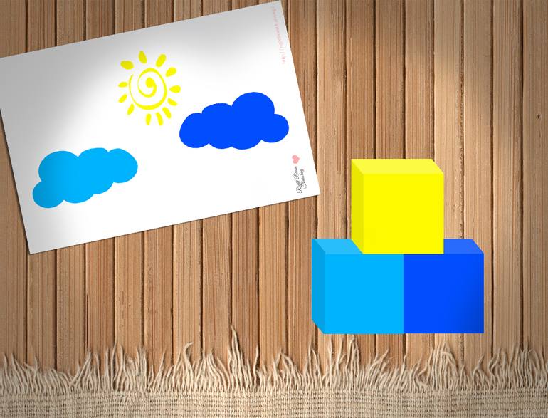 Подготовьте карточку с иллюстрациями и несколько кубиков. На карточках представлены вертикальные и горизонтальные последовательности из нескольких цветов (соответствуют цвету кубиков). Предложите малышу расставить кубики в заданной на карточке последовательности цветов.