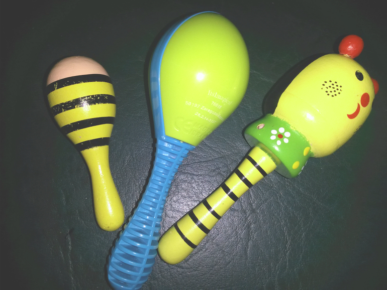 Вот такие легкие погремушечки, удобные для захватывания (маленькую пчёлку даю только под присмотром) .