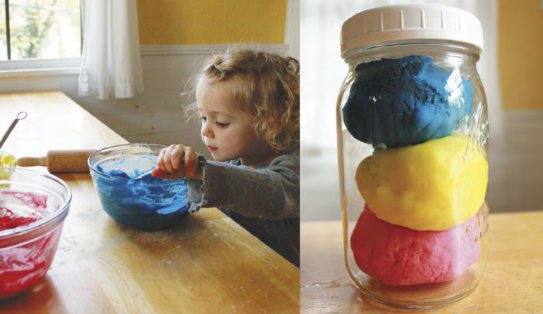 Кроме материалов, которыми ребенок пользовался в годовалом и двухлетнем возрасте, теперь он может работать с ножницами (хотя, скорее всего, уже пробовал что-то вырезать и раньше), лучше понимает, как взаимодействуют клей и бумага, и знает, как склеить два предмета. Он станет катать шарики из пластилина и лепить из него змей. К этому возрасту у ребенка уже достаточно терпения и сообразительности для того, чтобы под вашим руководством начать работать над многоэтапными упражнениями. Дети дают своим картинам названия и даже что-то рассказывают о них.