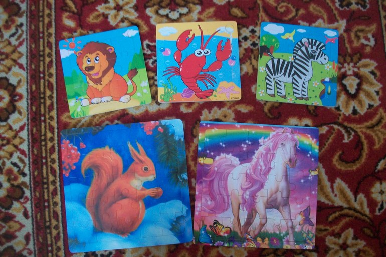 3. Из того же магазина фикс-прайс были приобретены также различные пазлы. Сначала маленькие - очень долго они были у нас хитом, сын сам доставал их и сидел, собирал. Большие пазлы были куплены значительно позже, их мы собираем вместе, т.к. у сына не хватает терпения собрать всё самому, да и не всё точно знает, какую деталь куда ставить.