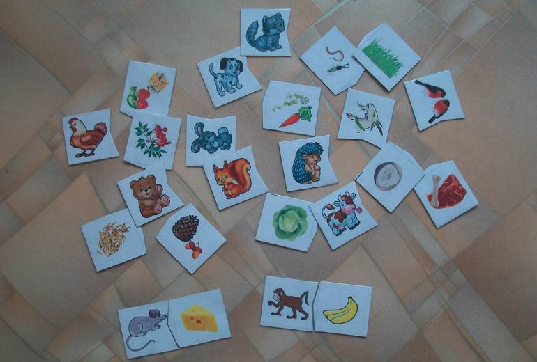 6.Сделала сыну игру «Кто что ест», где 2 части собираются вместе по типу пазла.