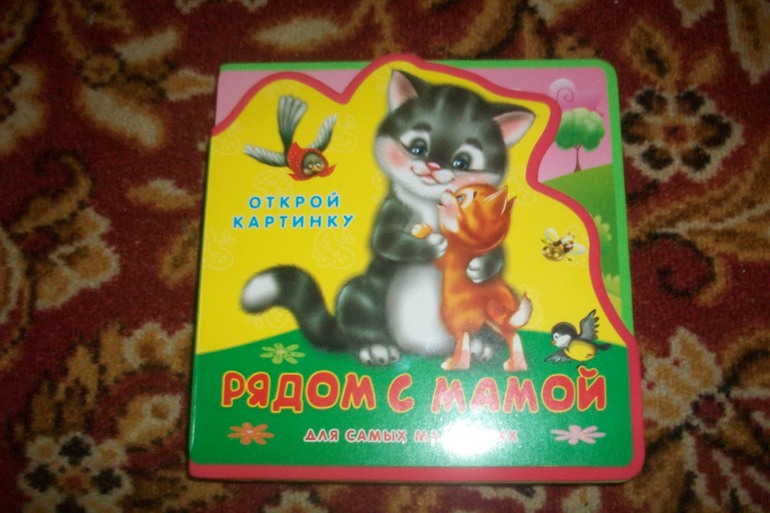 - книга "Рядом с мамой" - книга с вставными картинками: курочка, которая вынимается, а за ней ее детки - цыплята; свинья, а за ней - поросенок и т.д. (овечка, лошадка, корова)
