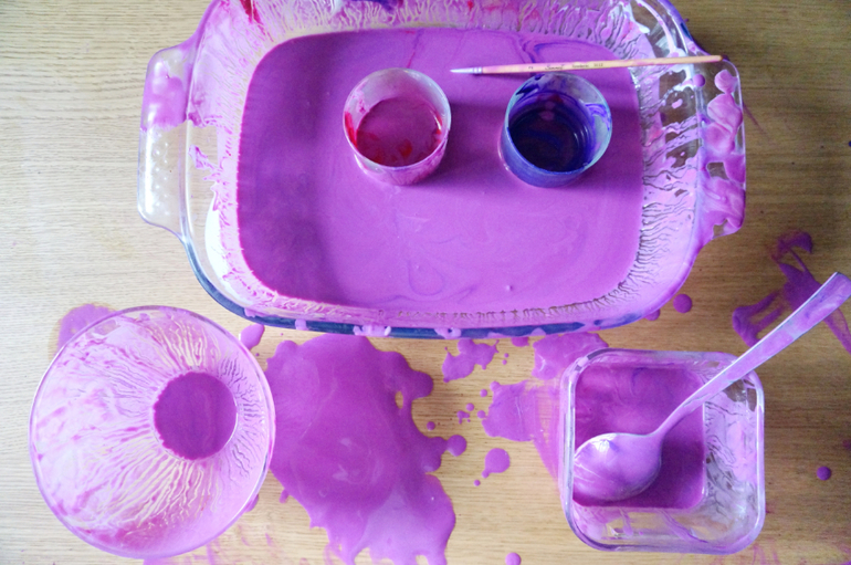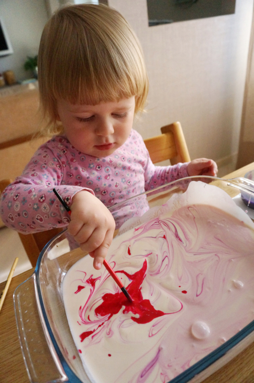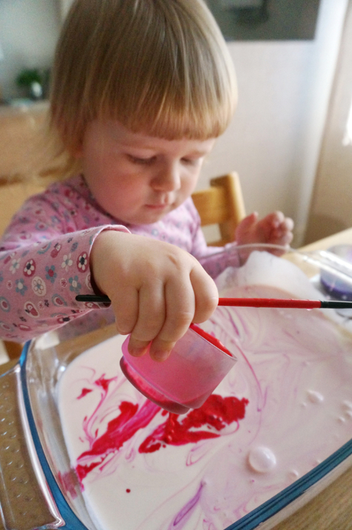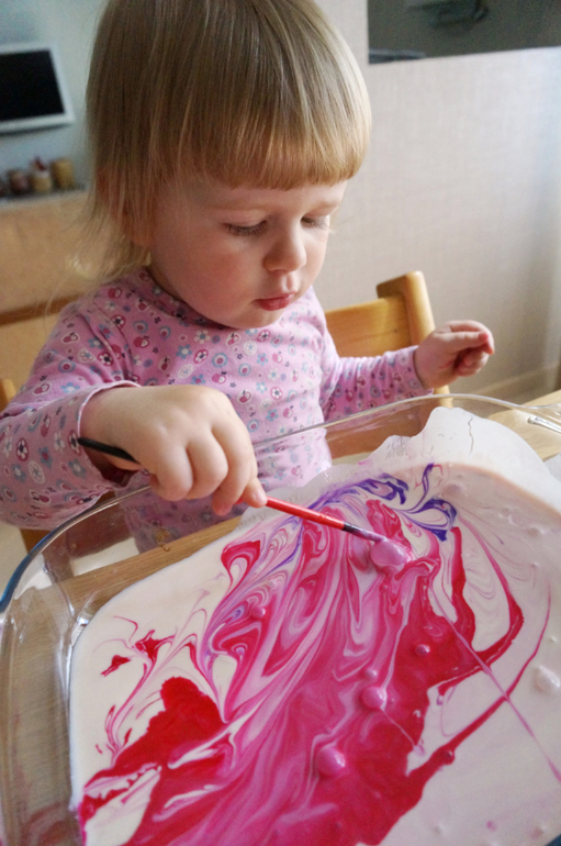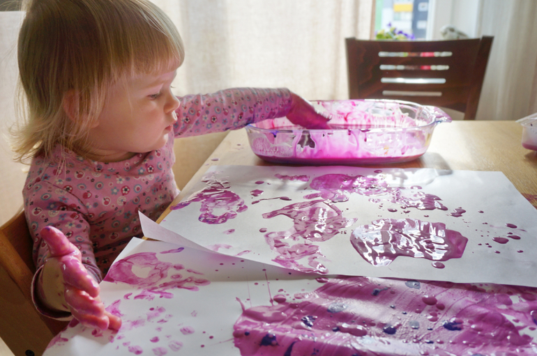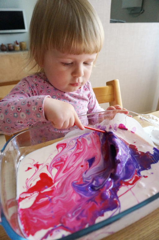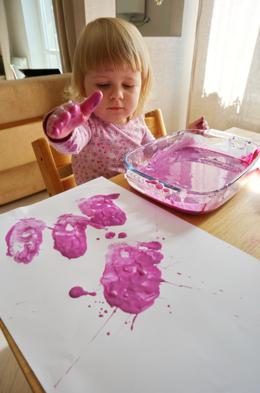Художественно-эстетическое развитиеО молочном, кефирном, ряженковом рисовании я рассказывала не раз, но хочется к нему возвращаться вновь и вновь, потому как красота неописуемая, да и оттенки всегда берем разные и получается новый контекст. В этот раз банка просроченной ряженки, яркие цвета лета - розовая и фиолетовая гуашь, чуть разбавленная водой! Сначала любуемся потрясными разводами и фрактальностью границ, потом месим все до одурения, а затем Маша попросила штамповать свои ладошки и устроила еще и рисование на больших листах бумаги! Цвет получился глубокий, фактура такая липкая, глянцево-блестящая, а лучи солнышка из окна придавали столько таинственности и даже чудесности! Порисовали в удовольствие, ну, и были, как положено принцессам, все "в розовом"!