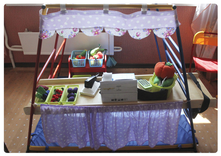 Нас снова выручил спорт-комплекс. Сшила на него накидку и, теперь у нас есть свой собственный действующий магазинчик.