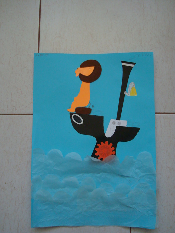 Аппликация "Бонифаций плывет к бабушке" это мой экспромт. Соне нравится этот мультик, мы его всегда эмоционально обсуждаем, и при очередном просмотре я решила, что это "оно". Теперь дочка просит включить мультик и часто сравнивает похоже или не похоже получилось у нас. Говорит, что похоже.