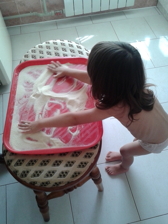 Здесь закрашивание по трафаретам, вполне интересная работа (хоть и идея не новА). Наконец-то сподобилась до сенсорных шариков: отличная идея и достаточно проста. Наполнители: кофе в зернах, гречка, пшено, рис, мука. Интересно все это крутить и мять в руках.