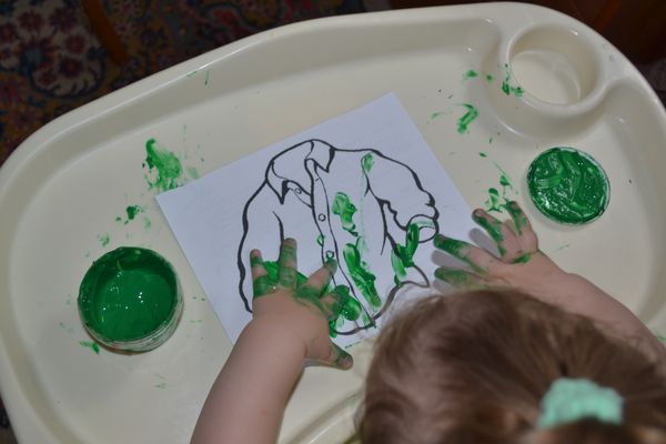 5. Порисовали пальчиковыми красками, заодно познакомились с зеленым цветом.