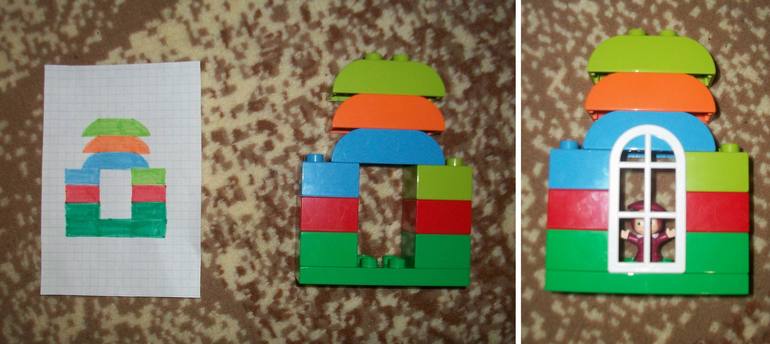 У нас набор включает много дублирующихся деталей, поэтому я просто делаю образцы, дочке предлагаю идентичные наборы деталей и прошу повторить. В таком случае можно пропустить подготовку схем ).
