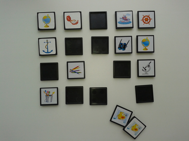 Пока я сделала мемори из картонных карточек, которые были в наборе (10 парных картинок вырезала и наклеила к тем, что были в наборе):