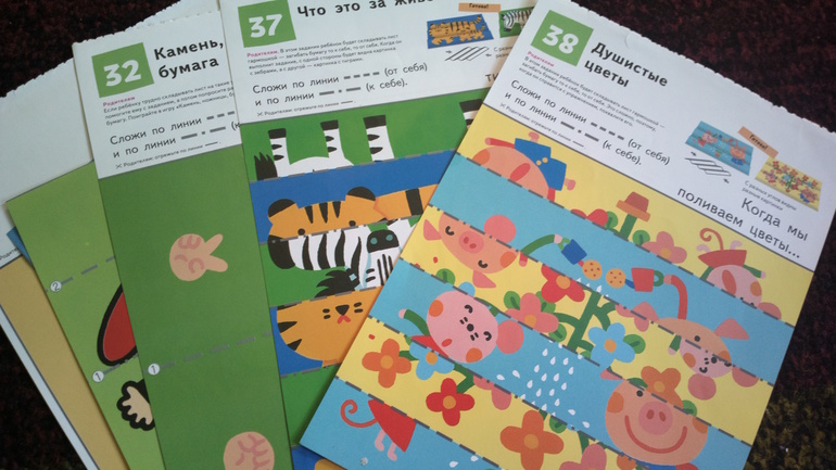 11. Вырезала из книги KUMON. Давай сложим картинки! листочки с заданиями: