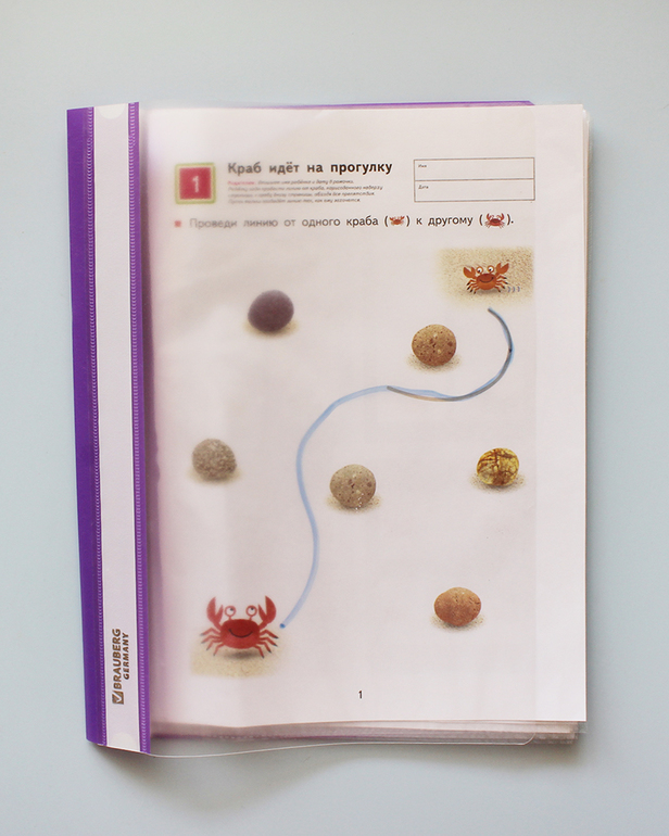 Таким образом, все задания можно можно выполнять беспрерывно просто листая файлики, т.е не надо переворачивать или вытаскивать лист , например, как из планшета/зип папки. Для нас это огромный плюс,т.к из-за лишних манипуляций у ребенка теряется настрой.