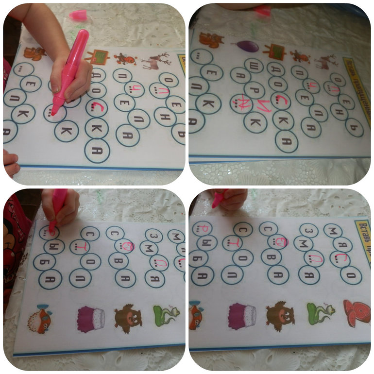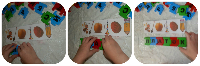 прочитай по первым буквам, состовлят слово по первым буквам картинок и пробуем читать его