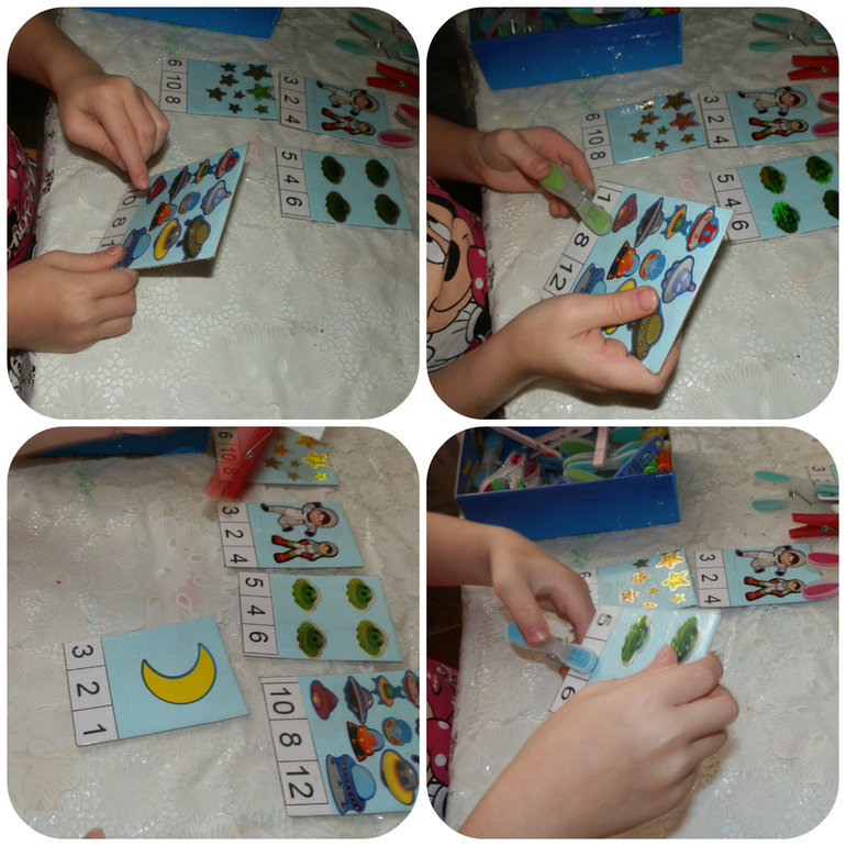 Начали с прищепок, я гоаорила колличество одежды которое нужно развесить на веревку, например 3 майки 1 платье итд!
