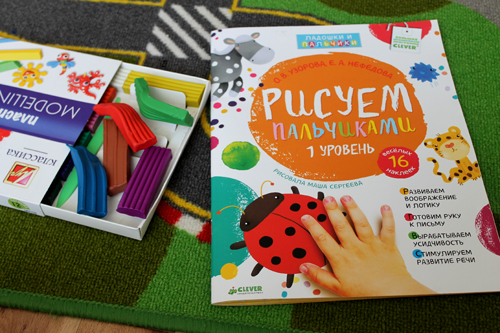 "Рисуем пальчиками" от Clever.Хана не любит пачкать руки краской,а вот аппликации пластилином обожает.Немного разворотов ниже: