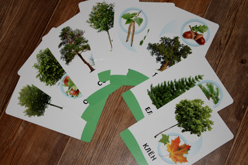 На прогулку берем с собой карточки и ищем листочки или шишки.Вот вытащила стопочку из рюкзака.Звучит странно,но брать с собой немного карточек очень удобно,потому что не нужно нести домой мусор