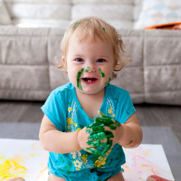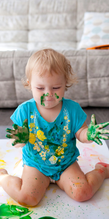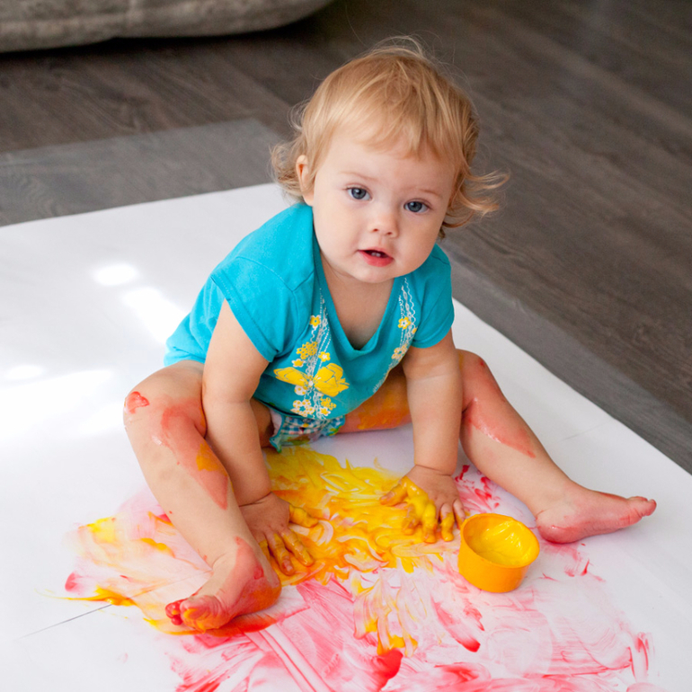 Рисуем пальчиковыми красками. Это мы делали в 1г2мес, и скажу я вам, что это уже поздновато для таких масштабов, ребенок подвижный, так и норовит куда-нибудь пойти с намазанными пальчиками :)