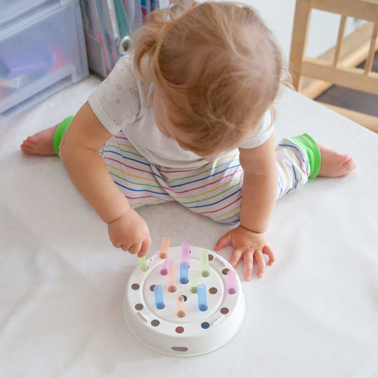 Развитие детей второго года жизниРазрезаем коктейльные палочки и втыкаем в дырочки чашки от мультиварки:)