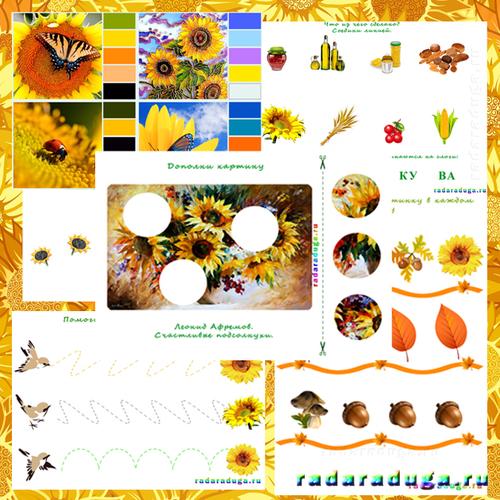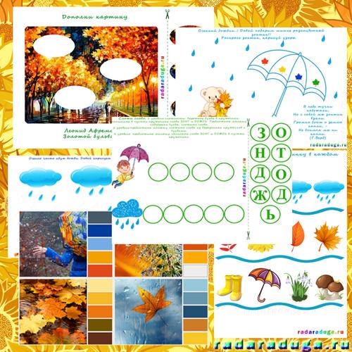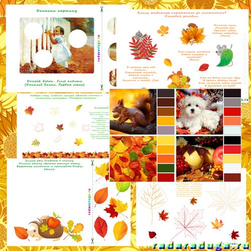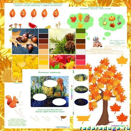 И ещё 3 блока (18 заданий) на темы: "Грибочки в лукошке", "Осенние цветы" и "Рябинка и птички".