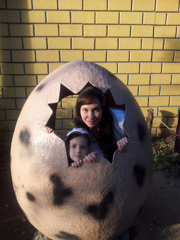 Сама выставка с динозаврами не такая уж и большая , цена приемлемая . На территории экспозиции есть 3 площадки с мастер-классами , две зоны для фото, но все лезут фотографироваться и туда куда нельзя и конечно же экскурсовод !! Мы как раз попали на экскурсию : было интересно , познавательно , не затянуто , не скучно !!! Экскурсовод рассказывал , и вел беседу с детьми , и просил их напугать самого грозного динозавра , и покормить милого маленького динозаврика . По концовке вся детвора залезла в яйцо и начала кривляться на камеру родителям .