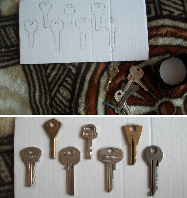 2. Подобрать ключи: каждый ключ на своё место по силуэту