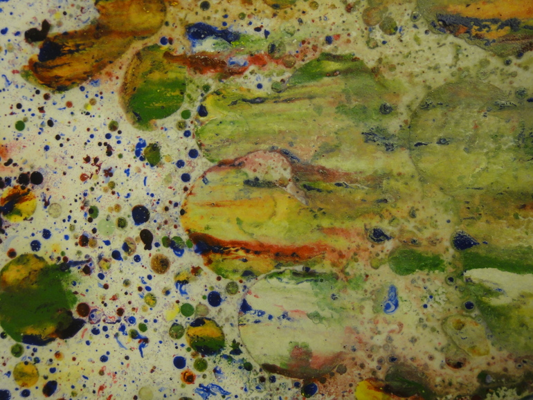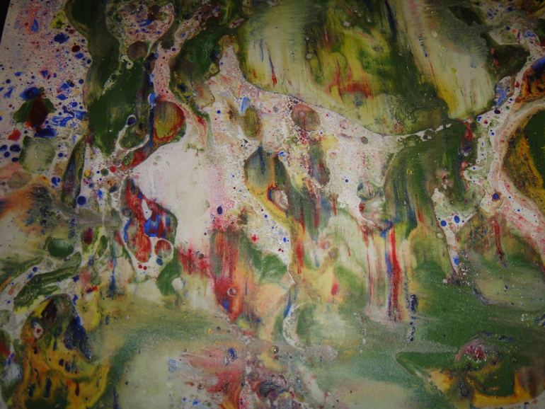 Потом мы позабавились с краской, добавляя ее в воду. Масляные краски не смешиваются между собой в воде и получаются клевые узоры, похожие на масляные капли.