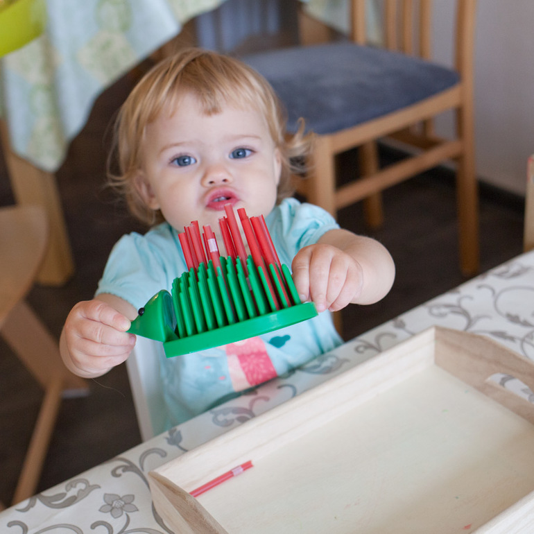 Предварительно мы нанизывали коктейльные палочки на нашего ёжика, а уже потом он пошел собирать урожай :)