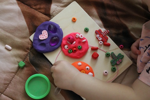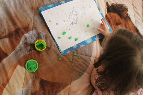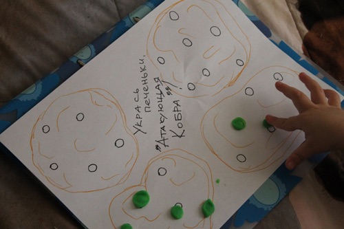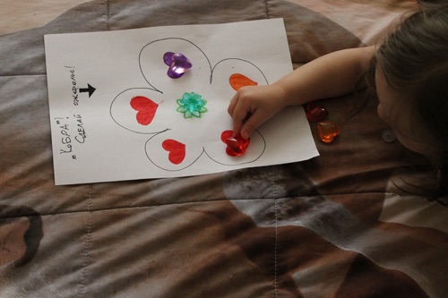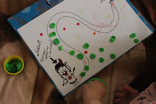 Провели девочку к ее домику.Фломастерами Ханю уже не хочет рисовать дорогу,надоело,она играла с Лего-фигуркой,которая где-то спряталась за кадром: