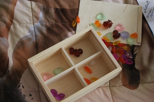 Собрали мы урожай:кукурузу,желуди,рыбу и ракушки.Рассортировали: