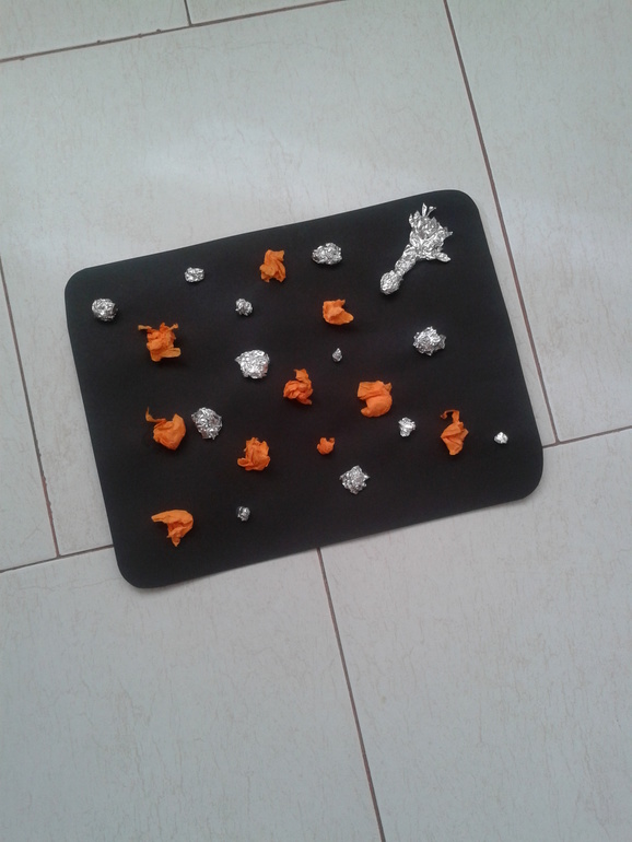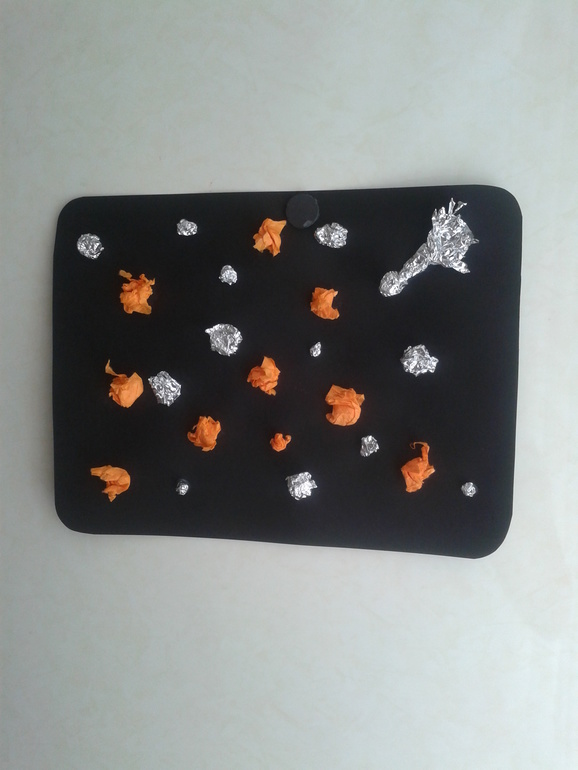 Соне и мне понравился результат, просит ещё космос сделать. А у меня появилась идея аппликации на эту тему из другого материала, как -нибудь сделаем.