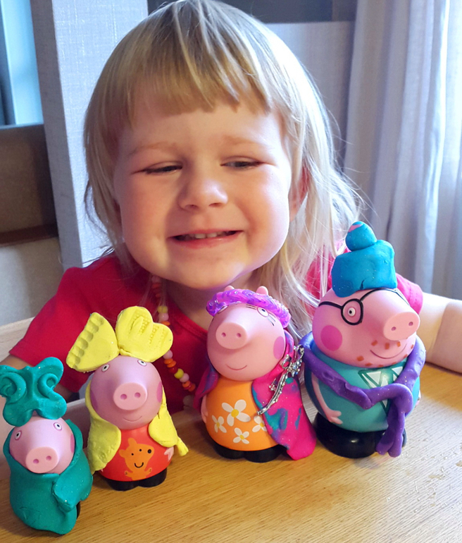 Из фактурных "тканей" мы сделали одежду на для семьи Пэппы, которая недавно появилась у нас дома. Нарядные герои отправились в театр))