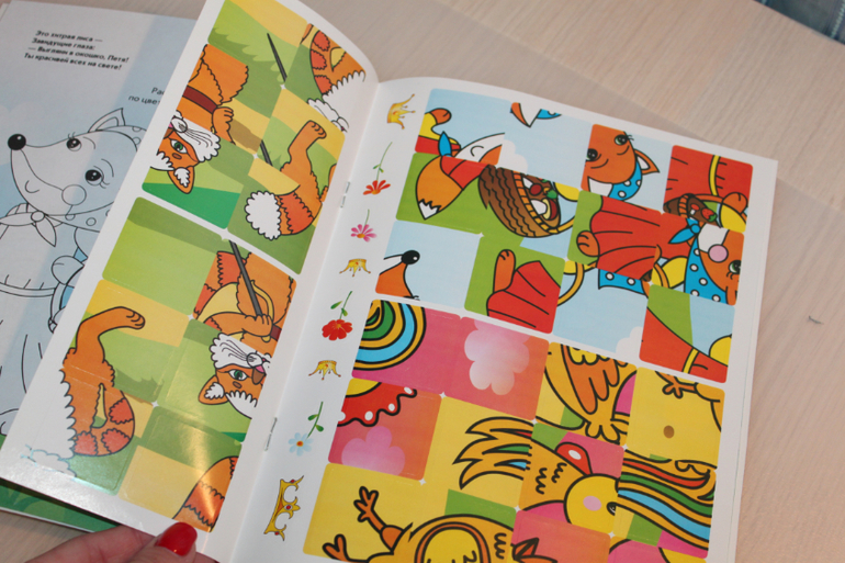 5.И снова Мозаика)))) В целом очень неплохие наклеечки, есть описание,есть задача! Кире пока трудно с квадратами,поэтому обязательно куплю круги . По возрасту очень даже подходит,реальные 2+. 6.Книга из комплекта ШСГ 1+, Форма и цвет....Это книга-это сказка...Курочка Ряба . Мне очень понравилась тем,что ребенок может исправить в течении нескольких секунд положение фигуры,чего не сделаешь с наклейками. Клей не высыхает мгновенно,и есть возможность что-то подправить.