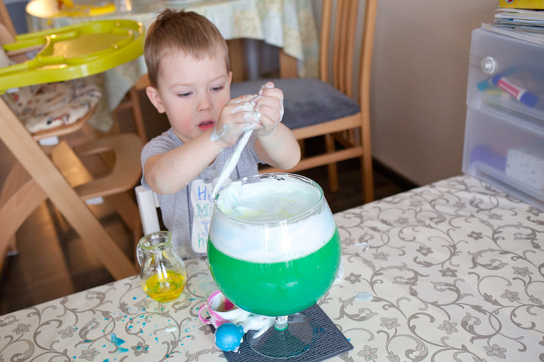 А потом Ваня просто смешивал цвета, а Маша играла с пеной)
