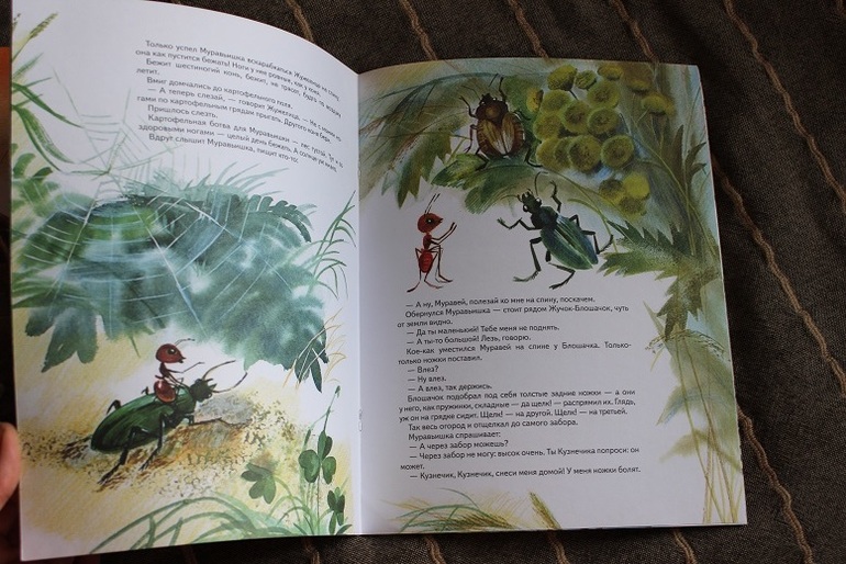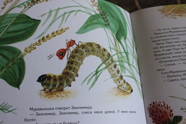Множество подробных описаний насекомых, их внешности и жизнедеятельности. Искрометные диалоги прилагаются) Муравей, конечно, тот еще фрукт - и ленивую гусеницу, в конце концов, укусил, когда та не помогла, и с Землемера быстро спрыгнул - не понравилось кататься, трясет.