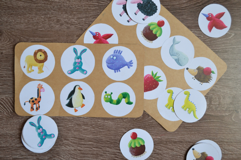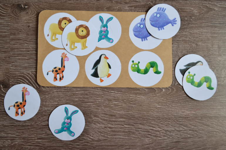 Я сделала 2 разных лото, одно поменьше, другое побольше. Андрюша еще плохо разбирается, поэтому пока освоили маленькое.
