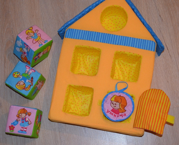 Суть его следующая: есть домик с 3 окошками и открывающейся дверцей, а также солнышко на крыше. В окошки вставляются мягкие кубики, которые представляют собой набор повседневных дел для ребенка: умыться, покушать, читать, играть, рисовать, покрутить обруч, убрать игрушки и другие. Теперь наш каждый вечер начинается с постановки целей на следующий день, а каждый день с выполнения намеченных целей! То есть дочка сама выбирает, как поставить кубики в окошки, какие дела предстоит ей выполнить, причем в течение дня выполненные мы меняем на новые! Роль данного интерактивного набора трудно недооценить! СОВЕТУЮ!!!