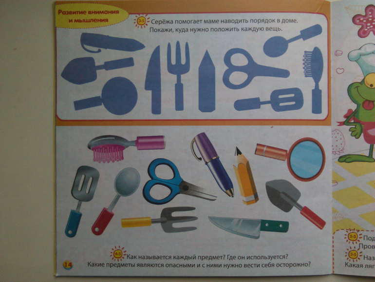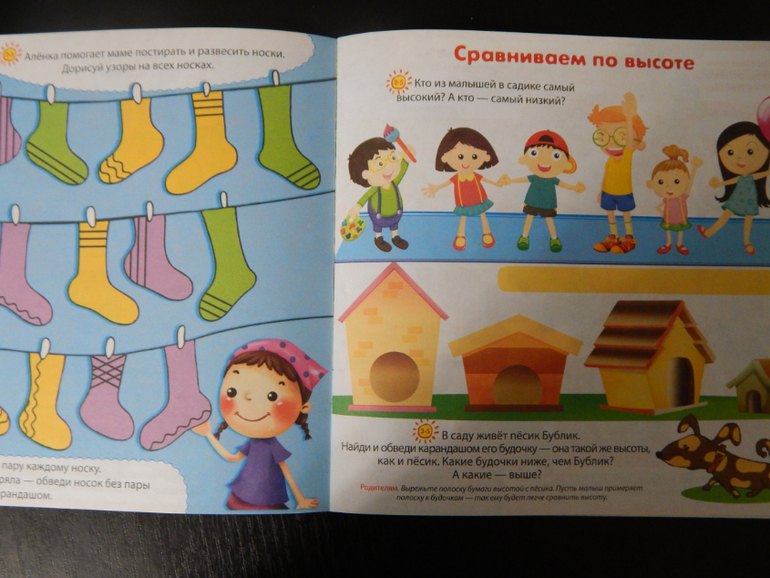 Журнал "Мамино солнышко" рекомендуют уже с 2 лет, остальные с 3-х. Но многие задания можно и для двухлетки давать в упрощенной форме. Меня привлекло то, что можно выписать на почте один раз и каждый месяц у тебя в почтовом ящике новый журнал. Правда приходит всего раз в месяц, поэтому выпишу на следующий год все три журнала. Пока дорастем до всех заданий, будем просто рассматривать и обсуждать. Вот пару страниц: