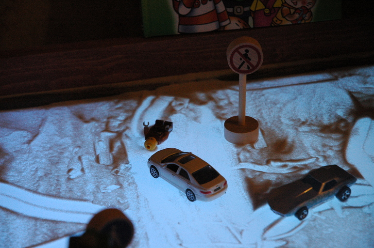 Изучаем окружающий мир (тематические занятия и циклы занятий)Тема Песочных ладошек "Безопасность на дороге"